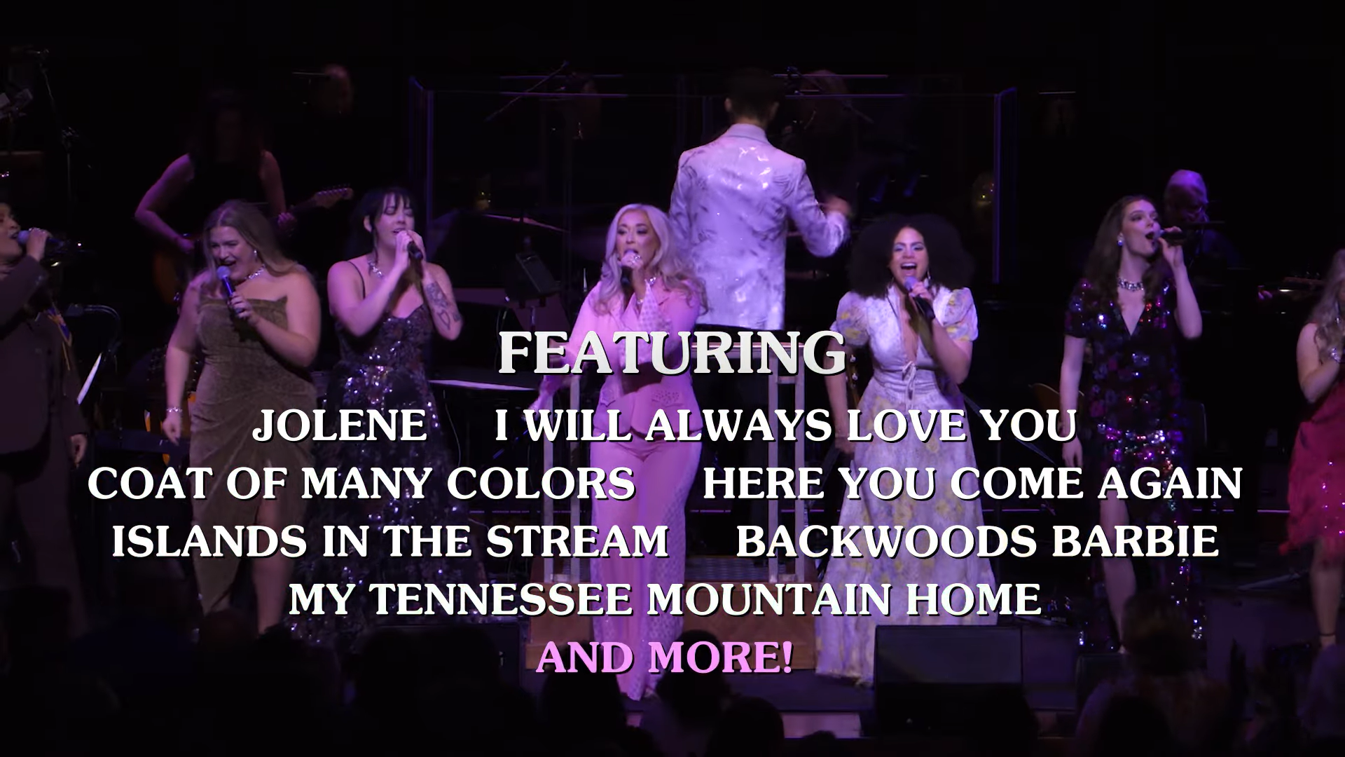 A multimedia experience featuring Dolly on screen, leading audiences in a visual-musical journey of her songs, her life, and her stories featuring songs like “Jolene,” “Coat of Many Colors,” and “I Will Always Love You.”