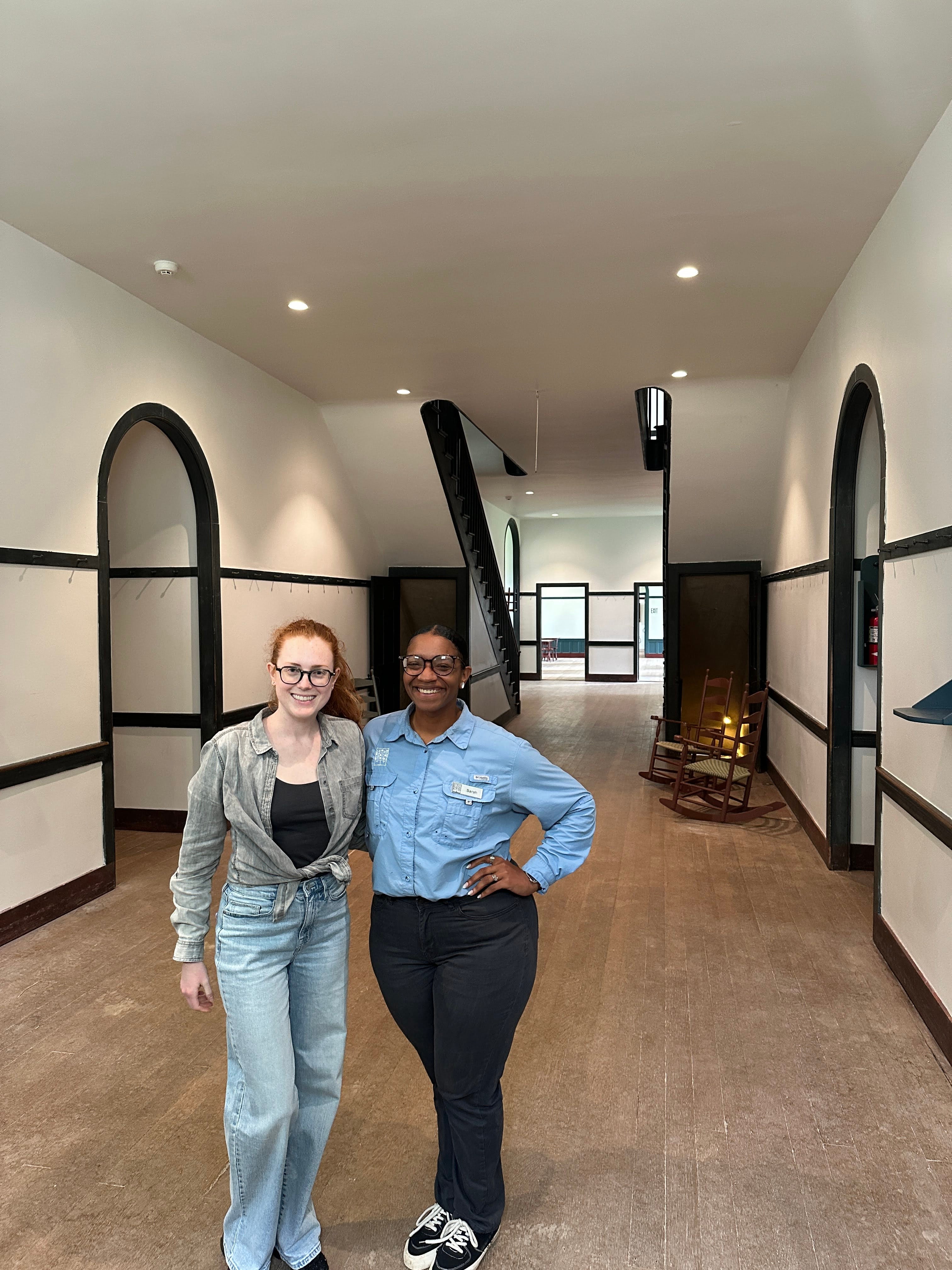 Returning to Pleasant Hill this September was a warm and moving experience. We stayed in the historic buildings—now a hotel furnished with original Shaker pieces—and enjoyed several farm-to-table feasts. After one such meal, paired with a beautifully curated string quartet program by the LO’s principals, I got to see the meeting hall from a new perspective. Billy, the village’s President and CEO (and one of the warmest people you could hope to meet), led Maggie Eronimous and me down a ladder into the open chamber beneath the floor. He showed us the dry-stacked stone columns that support the dance floor and transmit its vibrations into the under-floor cavity—a bit like a violin’s soundpost—while the mortar-free construction lets more vibration through and the open chamber beneath adds its own resonant bloom. The next day, with Lilly’s guidance, Maggie and I also got to sing some traditional Shaker songs in the hall. The acoustic is amazing—everything resonates, and singing in that space feels like pouring liquid light from your own voice.
