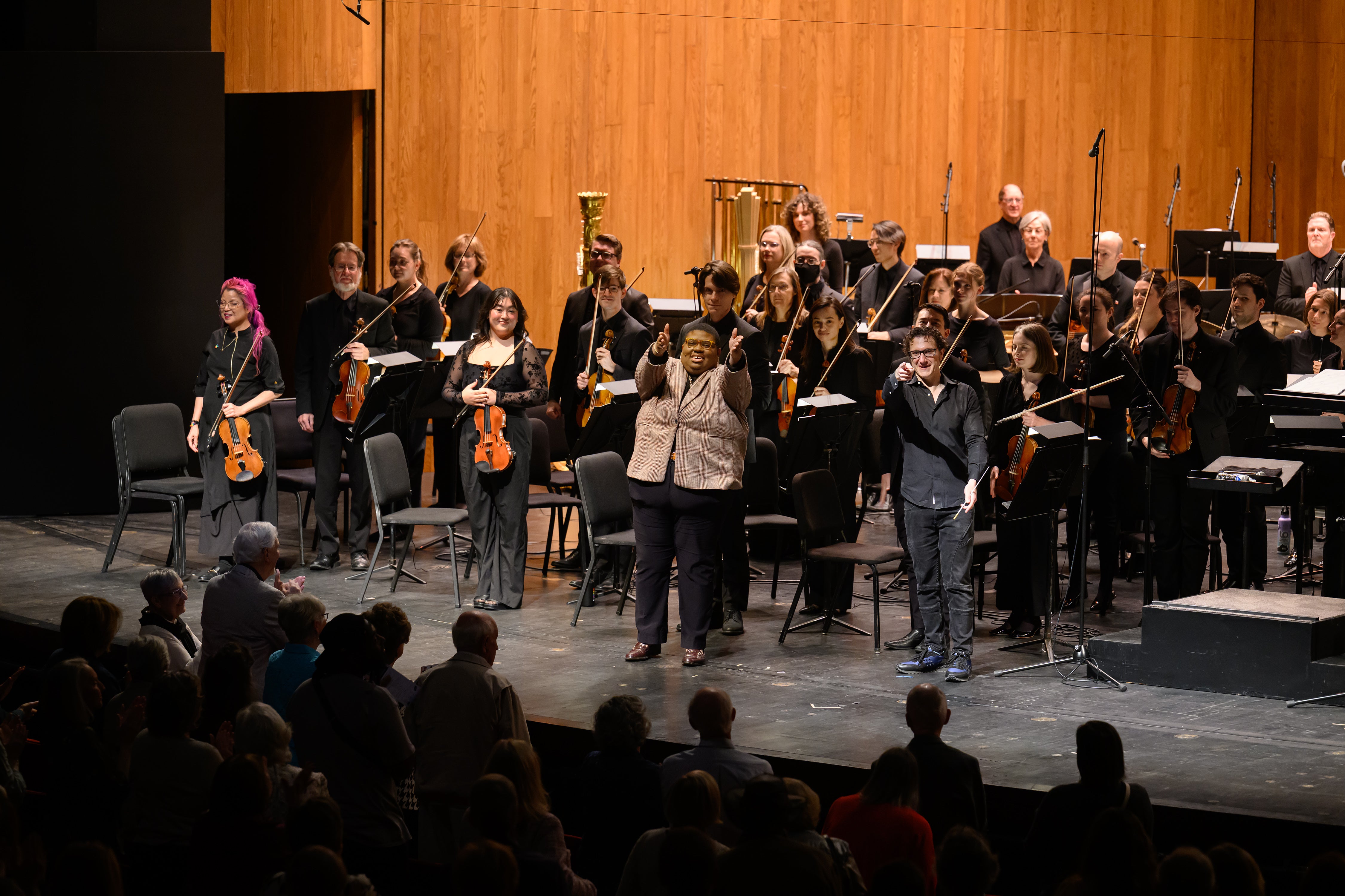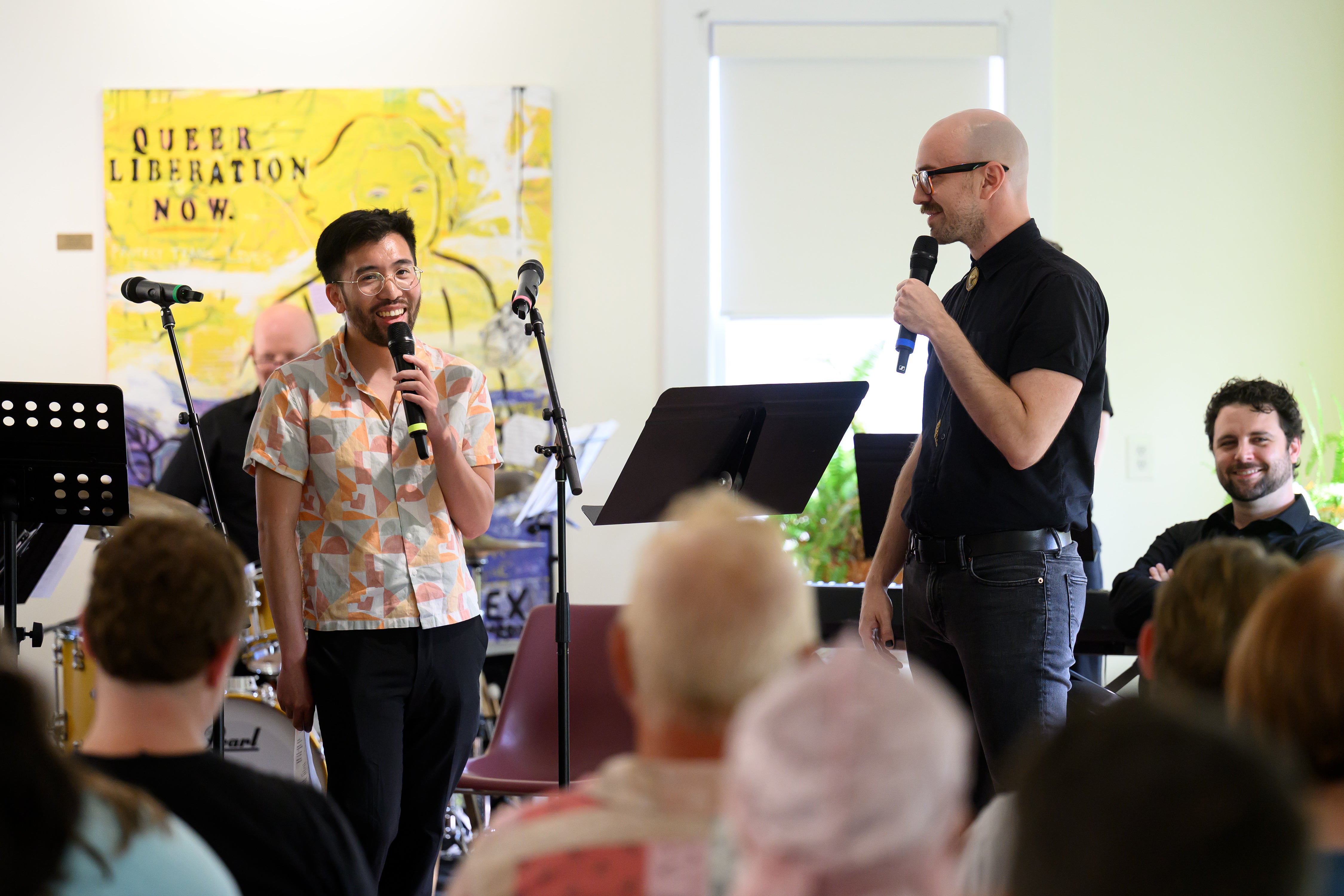 On June 20, we wrapped up our season with a special collaboration with the Louisville Pride Foundation. For several months, Baldwin had led a songwriting workshop for members of Louisville's LGBTQ+ community. Eight songwriters - grouped into four pairs - wrote original songs and lyrics under Baldwin's guidance, and musicians from the LO performed them at the Louisville Pride Center as part of Kentuckiana Pride. The songs were deeply personal and fiercely political, with styles ranging from intimate duets to strident hip-hop.